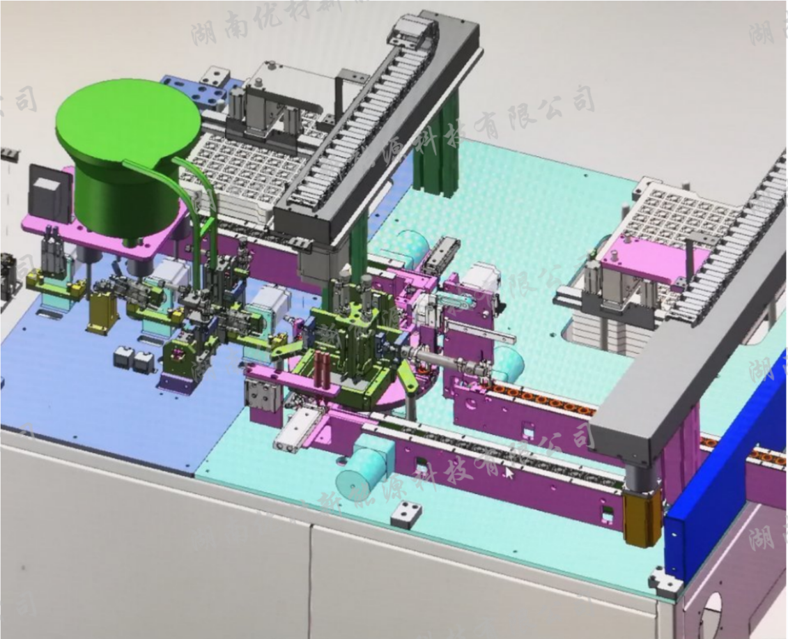 适用于3C行业的零配件的自动装配,装盘。从零配件的上料,上线,组装,点胶,装卡,上固化胶,电气检测,引出线整形,装盘实现全自动。产出速度3秒/个